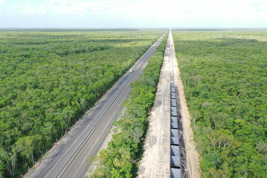 Construcción de doble vía férrea y autopista del Tramo 4 y vía férrea del Tramo 5 Sur del Tren Maya. Los alcances del proyecto incluyen obras complementarias en estaciones, paraderos, entronques, paseos de fauna y paseos inferiores vehiculares.