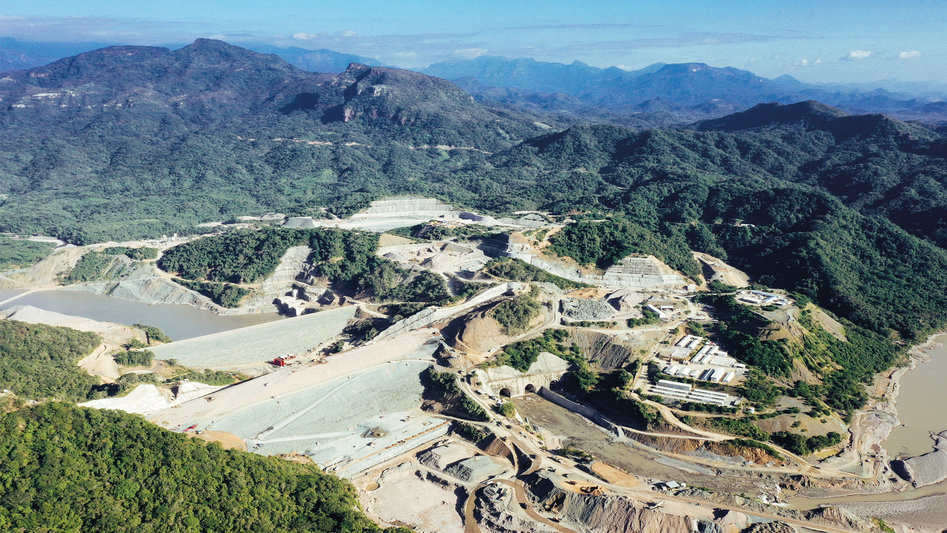 Construcción de una presa de almacenamiento e hidroeléctrica con tres túneles y una cortina de 152 metros sobre el Río Baluarte.